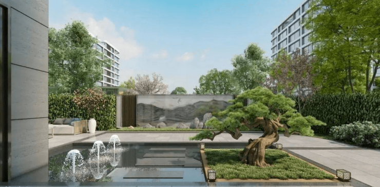 项目从入口处开始,每一步都充满了仪式感,而10000㎡的中心景观,以富春山居图为灵感打造,每个节点都是一幅独一无二的画卷。