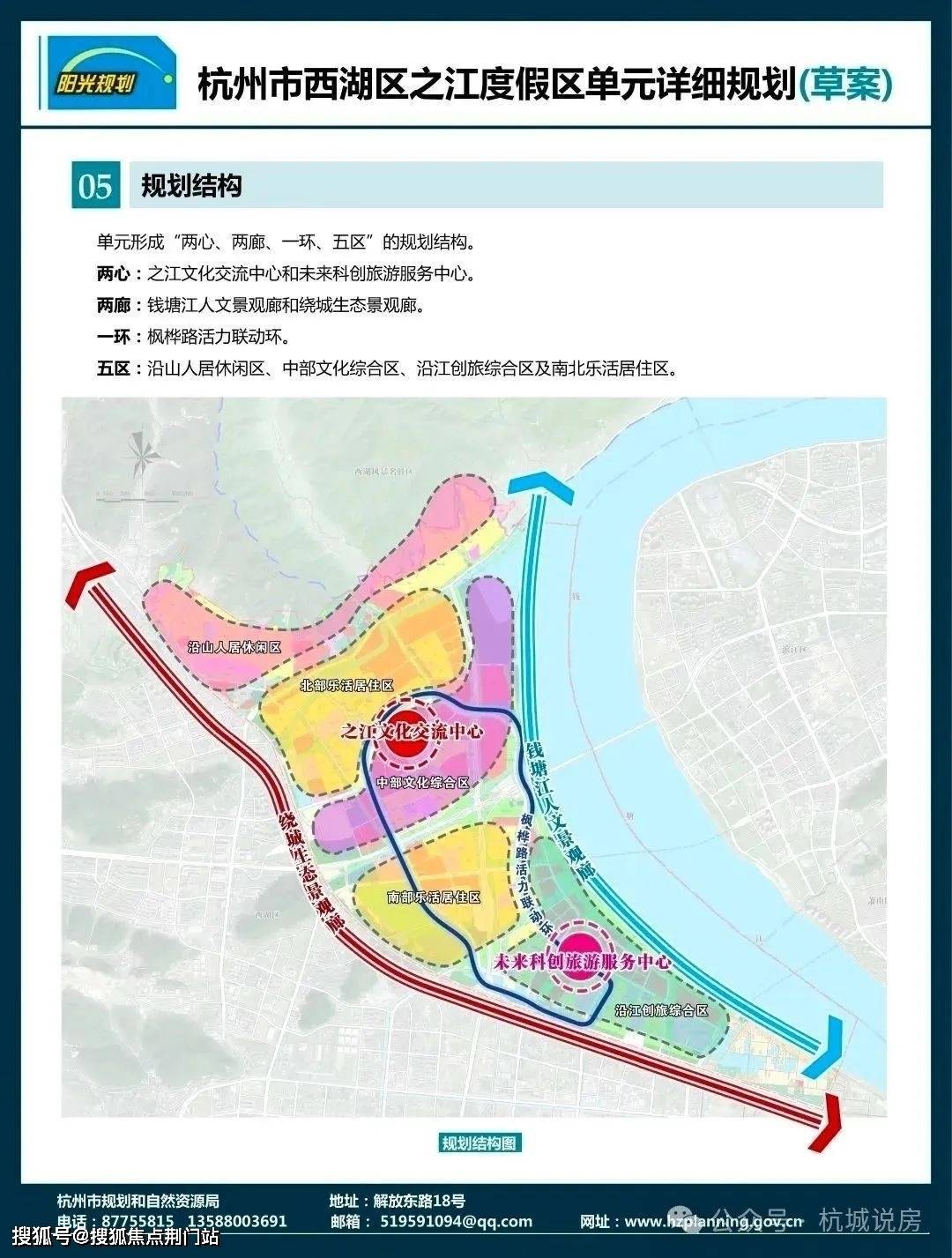 与之江文化交流中心共同构成之江度假区单元的核芯,推动区域的创新发展和文化旅游的融合。