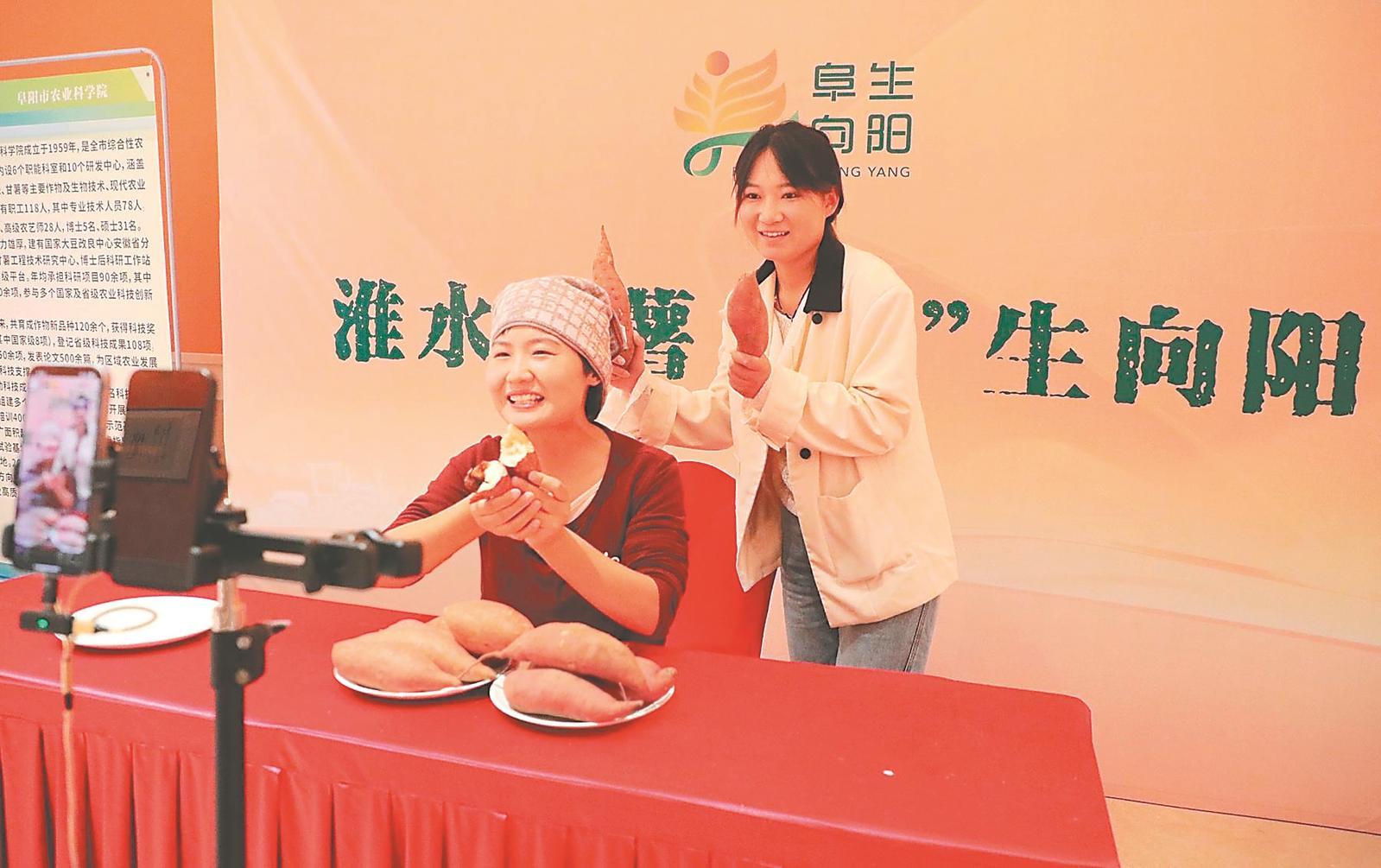 阜阳市临泉县,主播通过网络直播的方式帮助农户销售红薯。(资料图片)通讯员 宿飞 摄
